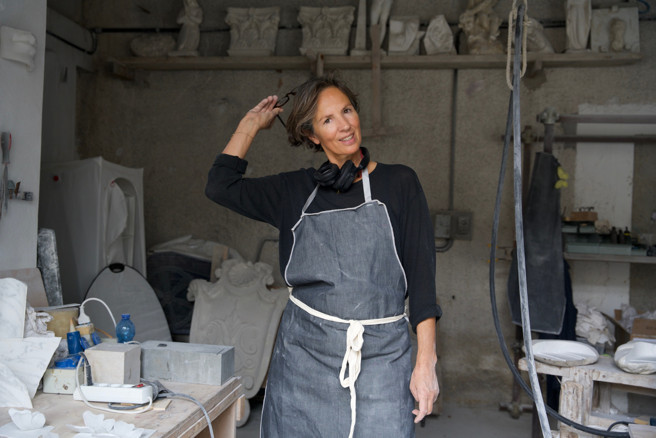 My studio is located 5 Minutes walking distance from the center, near by a big marble workshop. I mostly work with a jackhammer for sculptors and cisels. Sometimes, especially in the early stages of a piece, I use an electric saw for rough cuts. The finishing is always done with rasps, sandpaper and corrunt stones, traditional tools that allow me to bring out the surface and soul of the material.