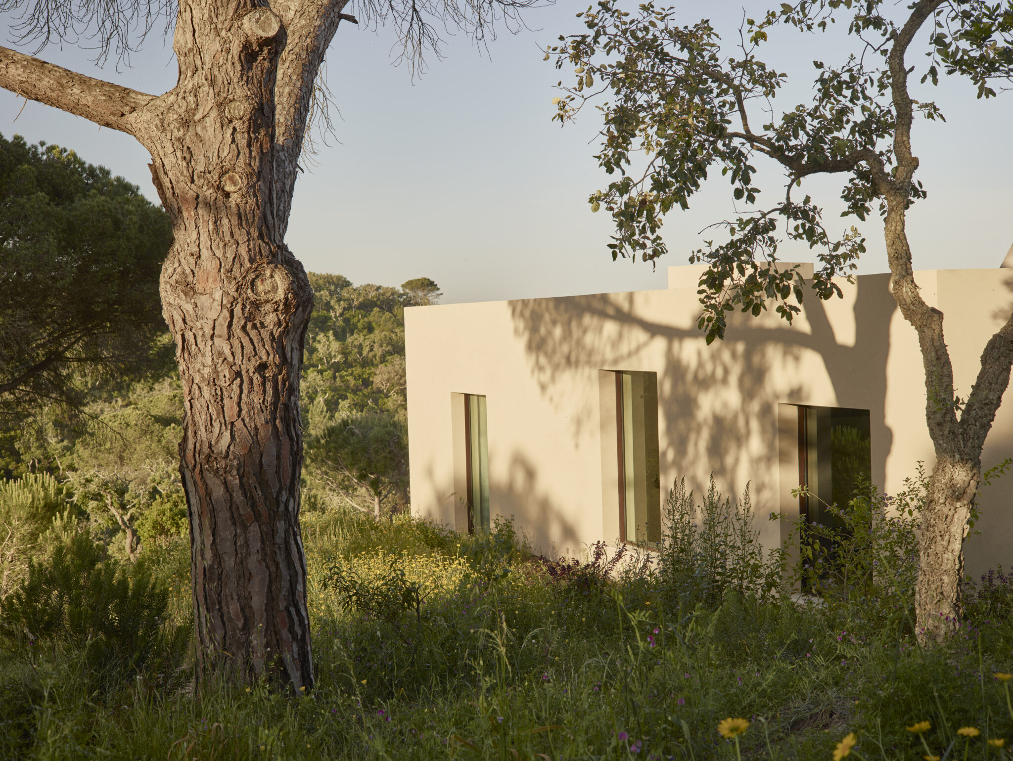 ‘Here in the mountains’, as the Portuguese name ‘Cá na Serra’ translates, lies a complex of three separate buildings. A former settlement has now become the center-point of the house, surrounded by 2,6 hectares of grassland with cork oaks, pines and olive trees.
