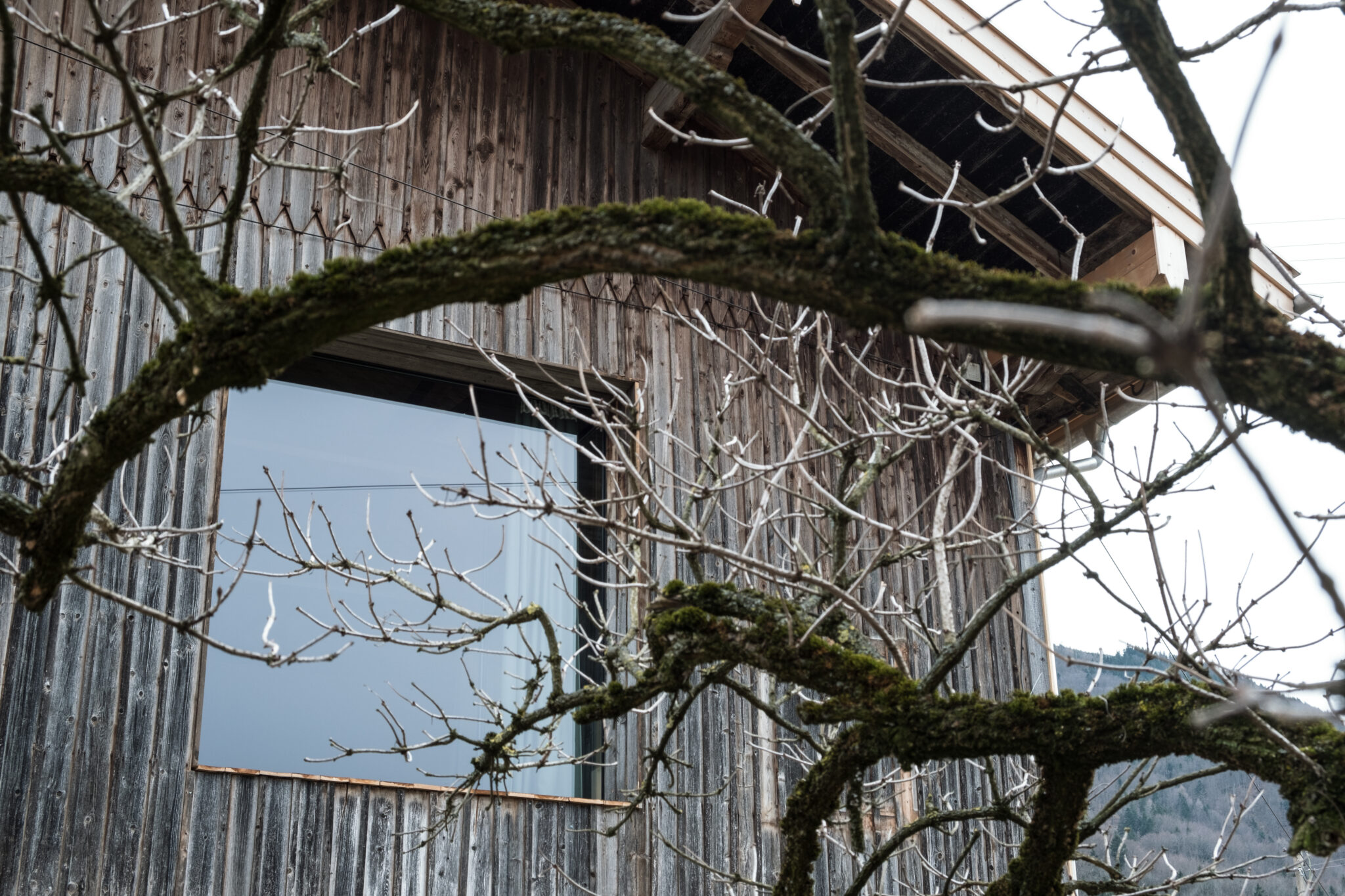 Nestled in lush green surroundings, the barn’s large windows offer views of meadows, mountains and picturesque houses in the Bavarian Alpine foothills.